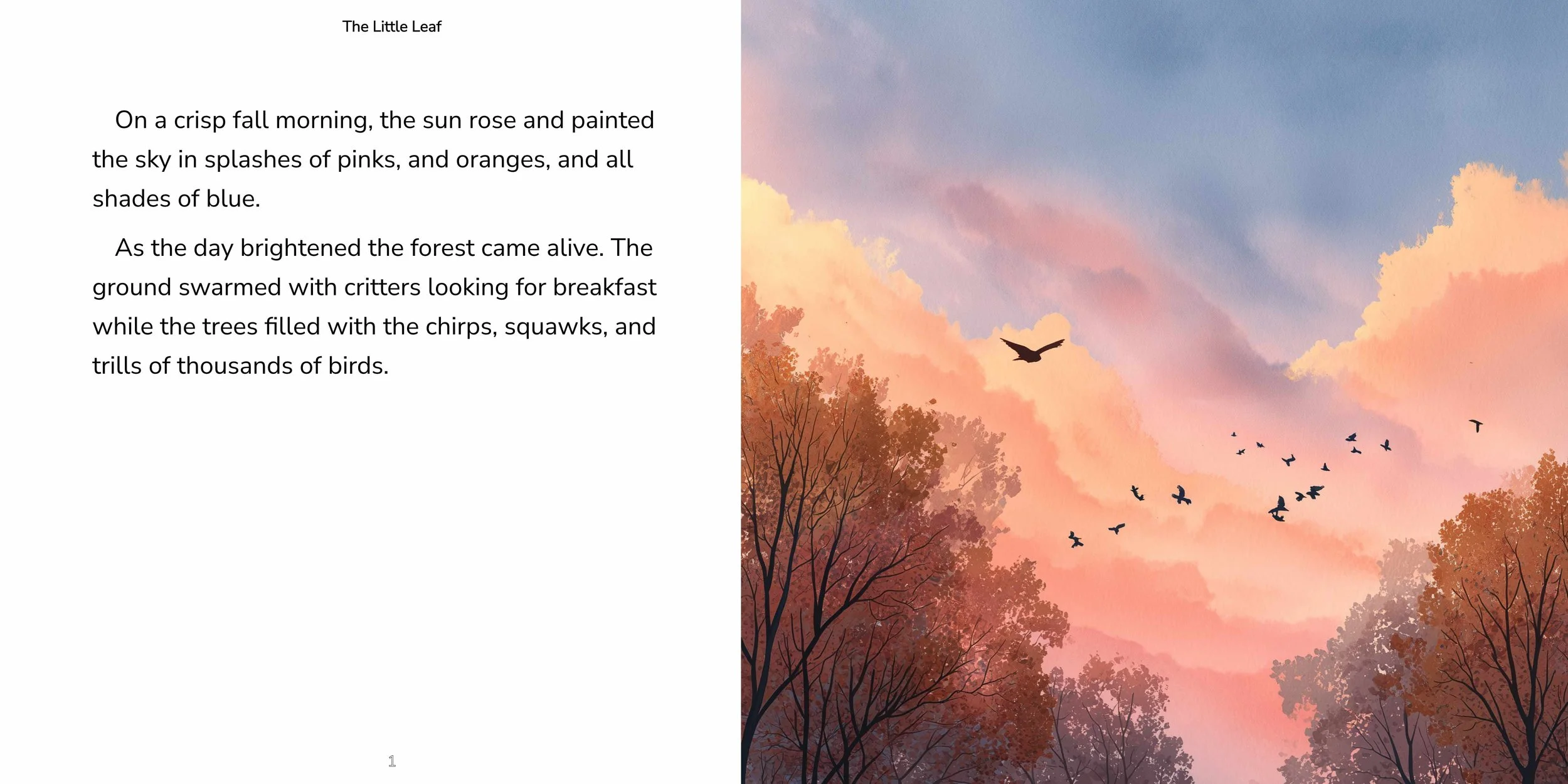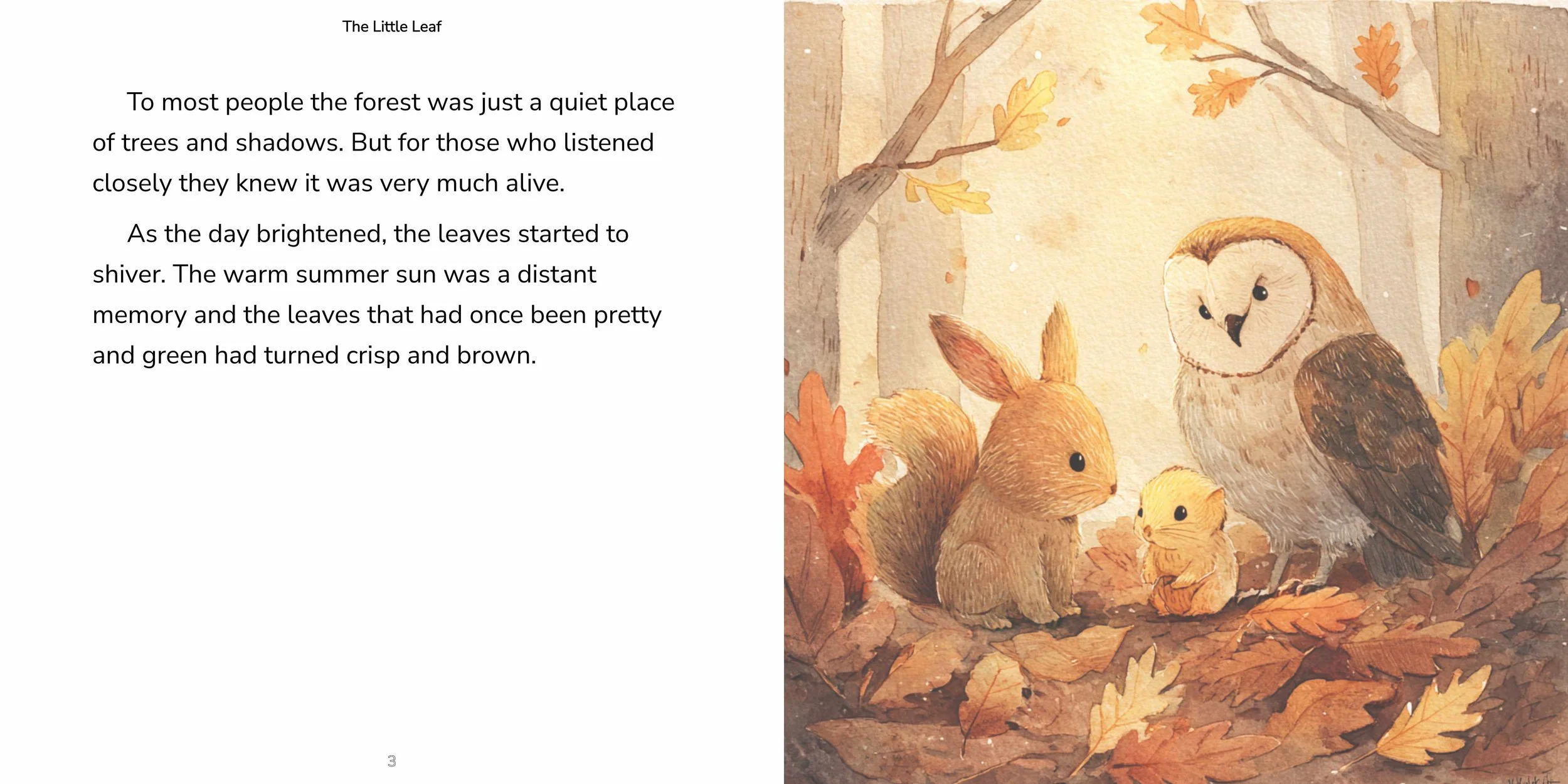 The Little Leaf is the story of a single leaf ripped from her tree in a late autumn wind. She is lost and afraid until a voice whispers her fears away.
